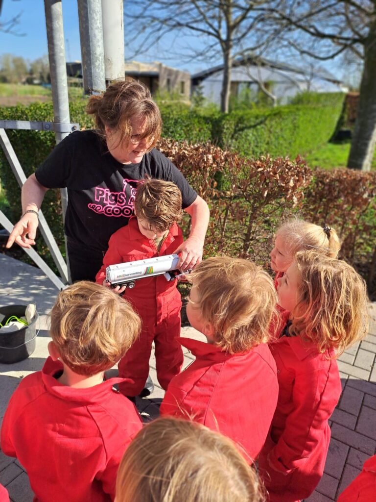 Passend bij het thema van deze periode (Boerderij) mochten de kleuters op uitje naar de varkensboerderij van boerin Janny. Wat was het een feestje! De kinderen vonden het leuk, spannend en interessant. We hebben veel geleerd van de boerin, door naar de varkens te kijken en te helpen als echte boeren en boerinnen. We mochten de varkens aaien, voeren en zelfs bij ze in het hok staan! Wat een dappere kinderen hebben we toch.